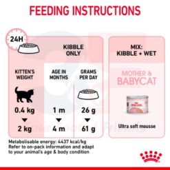 ROYAL CANIN MOTHER & BABYCAT được thiết kế dành cho mèo mẹ đang mang thai, trong thời gian cho con bú và mèo con từ 1-4 tháng tuổi.