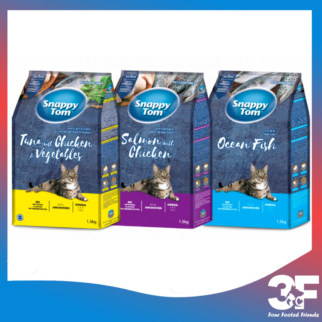 Dòng sản phẩm hạt khô cho mèo của Snappy Tom đã có mặt tại Việt Nam. Sản phẩm đóng gói theo 2 dạng là túi 1.5kg và 8kg với 3 vị: