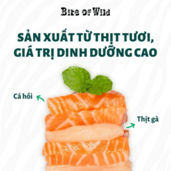 – Thành phần dinh dưỡng: Thịt gà và cá hồi, chứa toàn bộ dinh dưỡng mà mèo cần, có thể thay thế cho thức ăn khác.