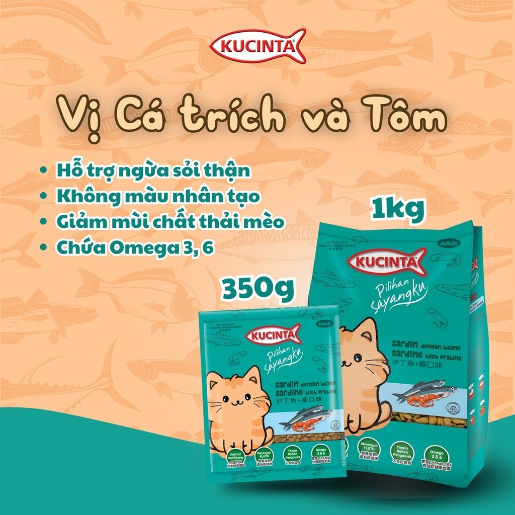 Với 2 quy cách túi 350g tiện lợi và 1kg tiết kiệm, các Sen rinh “bé” mèo cam Kucinta này về phục vụ cho các Báo thủ nhà mình nhé