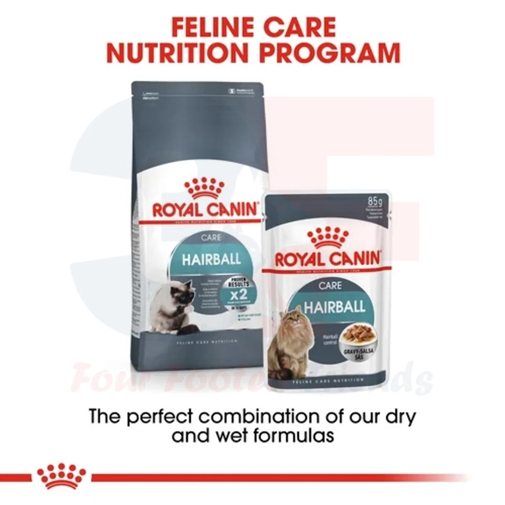 ROYAL CANIN Hairball Care Wet hỗ trợ sức khỏe của mèo bằng cách cung cấp dinh dưỡng chính xác dựa trên sự hiểu biết tường tận về nhu cầu của mèo với hơn 40 năm nghiên cứu và quan sát. Đặc biệt nhờ Protein L.I.P tiêu hóa cao hỗ trợ búi lông.