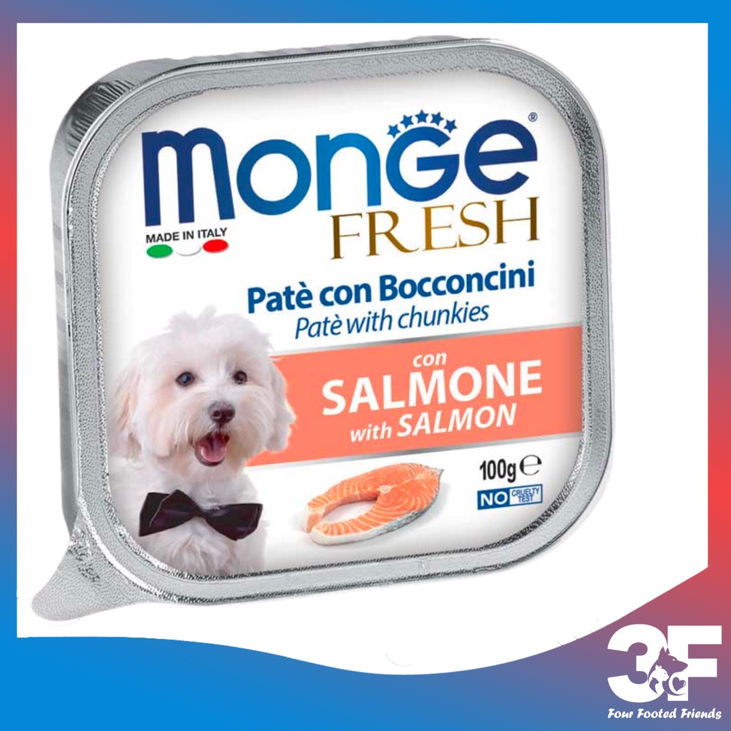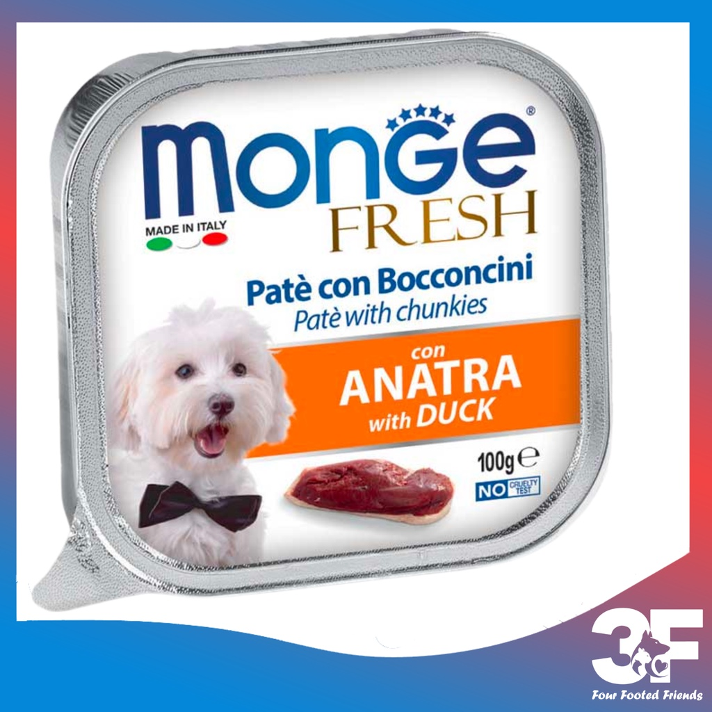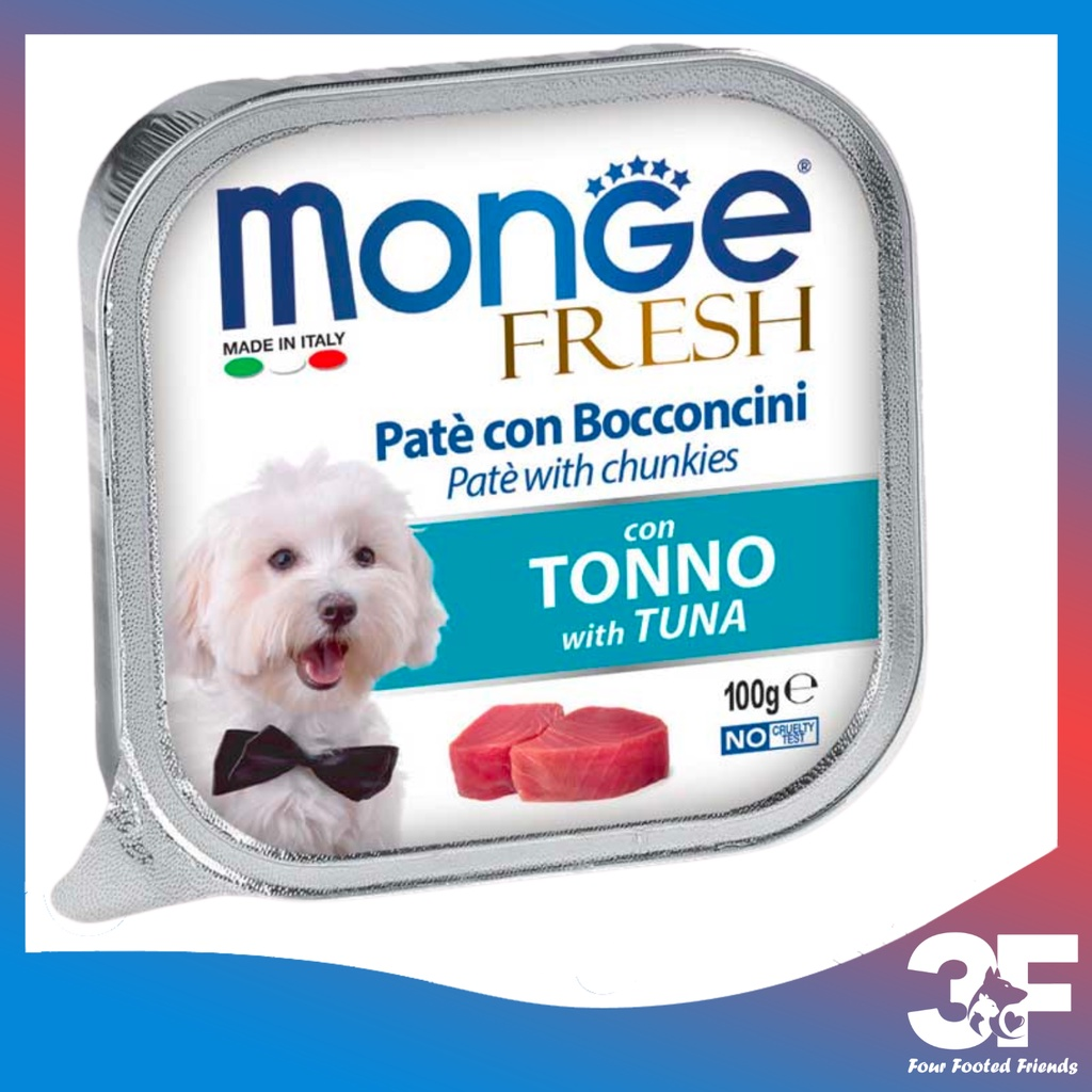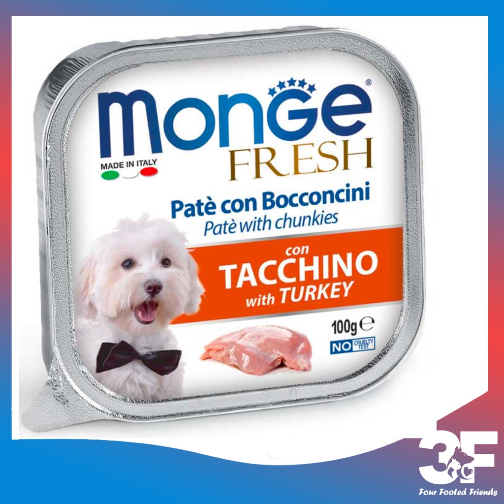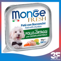 Pate Monge Cho Chó 100G là sản phẩm của Monge, Ý. Đây là dòng pate rất được ưa chuộng tại các nước Châu Âu với hương vị thơm ngon từ những loại thịt đặc trưng như thịt gà, thịt gà tây, cá ngừ… Pate Monge Cho Chó còn là sản phẩm an toàn đạt chất lượng vì không có chứa gluten, chất gây dị ứng ở cả động vật và người.
