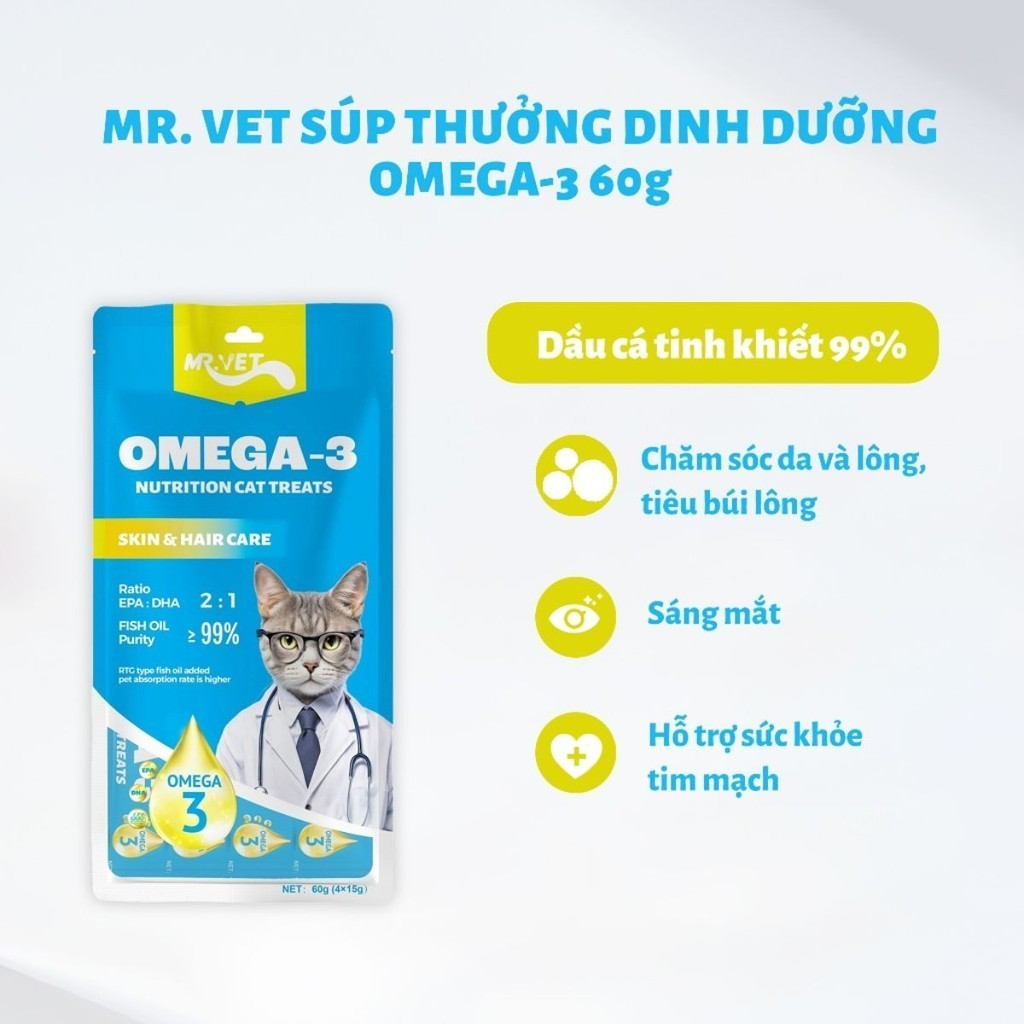 Súp Thưởng Cho Mèo MRVET Bổ Sung Omega 3, Prebiotics, Taurine Hỗ Trợ Tiêu Hóa Và Sức Khỏe Tim Mạch