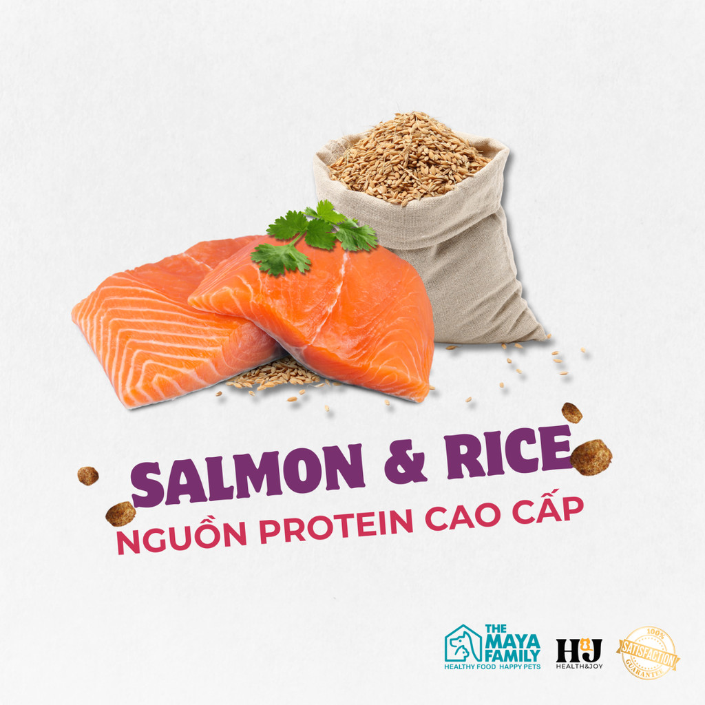 Thành phần: Bột thịt gia cầm, gạo, ngô, bột thịt (thịt bò), bột cá hồi (4%), mỡ động/thực vật, gan gà thủy phân, bột củ cải đường, chất xơ đậu Hà Lan, chất xơ rau diếp, chất chống oxy hóa (Dầu thực vật, Butylated Hydroxytoluene, Mono- và Diglycerides, Butylated Hydroxyanisole, Axit Citric) Bổ sung: Vitamin A dưới dạng acetat retinyl (25.000 IU/kg), vitamin D3 dưới dạng cholecalciferol (700 IU/kg), iodate canxi (1,5 mg/kg), sulfat sắt (II) monohydrate (180 mg/kg), sulfat kẽm monohydrate (60 mg/kg), sulfat mangan monohydrate (15 mg/kg), sulfat đồng (II) pentahydrate (5 mg/kg), selenium hữu cơ (0,05 mg/kg)