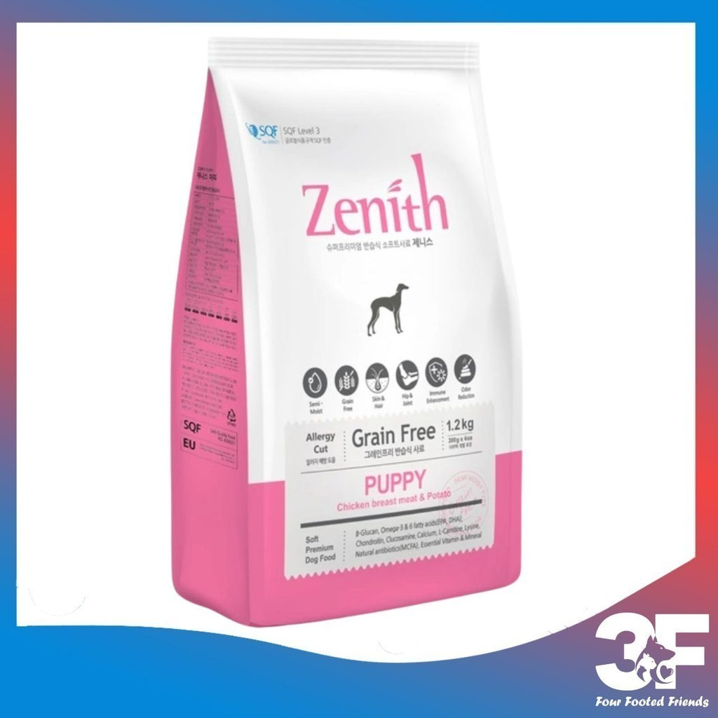 Thức ăn hạt mềm chó Zenithcó hàm lượng dinh dưỡng, vitamin và khoáng chất cao, được thiết kế để đáp ứng được khẩu phần ăn của các chú chó. Dầu cá hồi chứa Omega 3 và Omega 6 tốt cho mắt và da lông. Thịt cừu và Thịt nạc gà rút xương có giàu protein và ít béo, lượng calo cao giúp phát triển cơ xương chắc khỏe; canxi trong yến mạch và canxi carbonat giúp xương và răng chắc khỏe, phòng tránh bệnh hạ bàn.